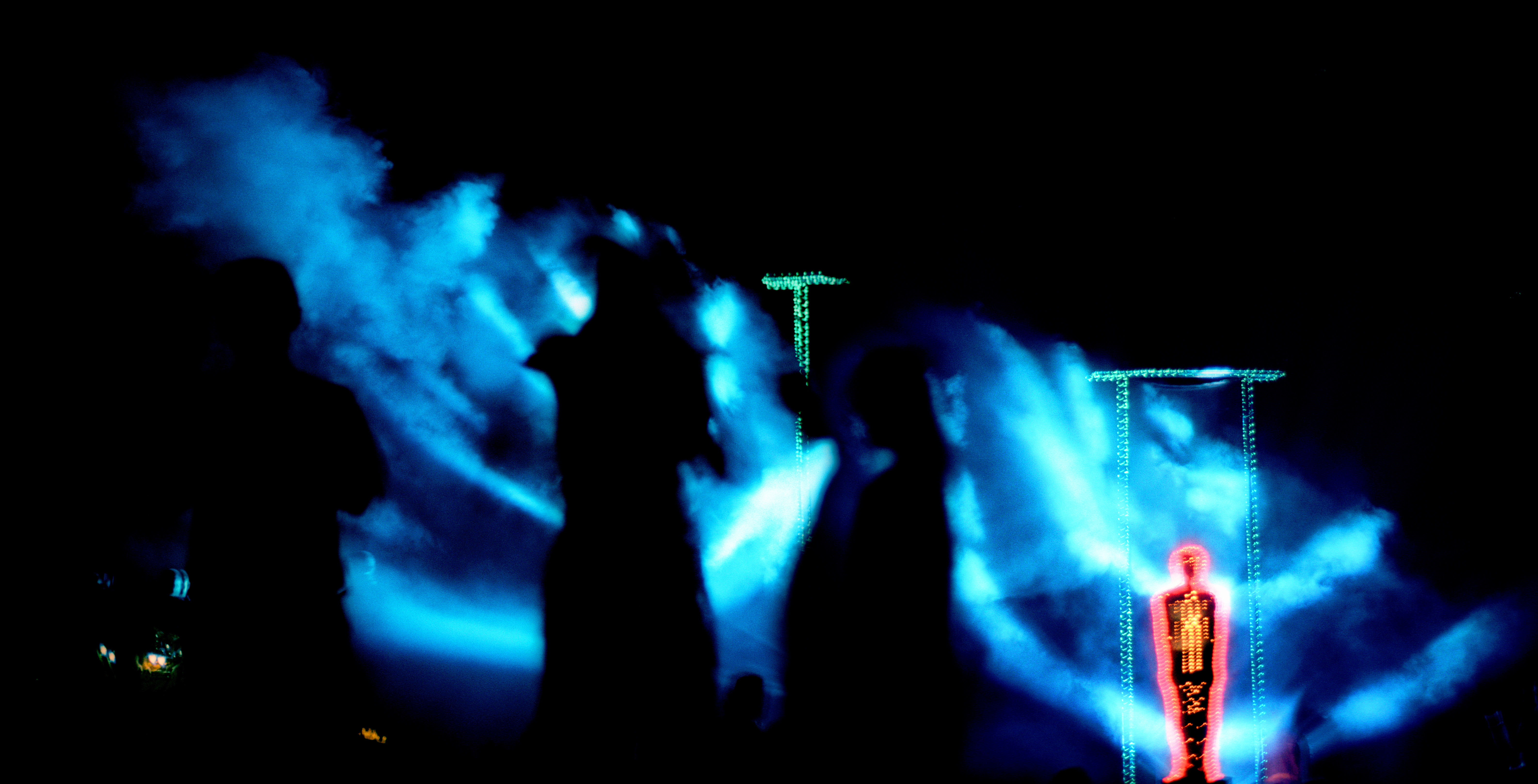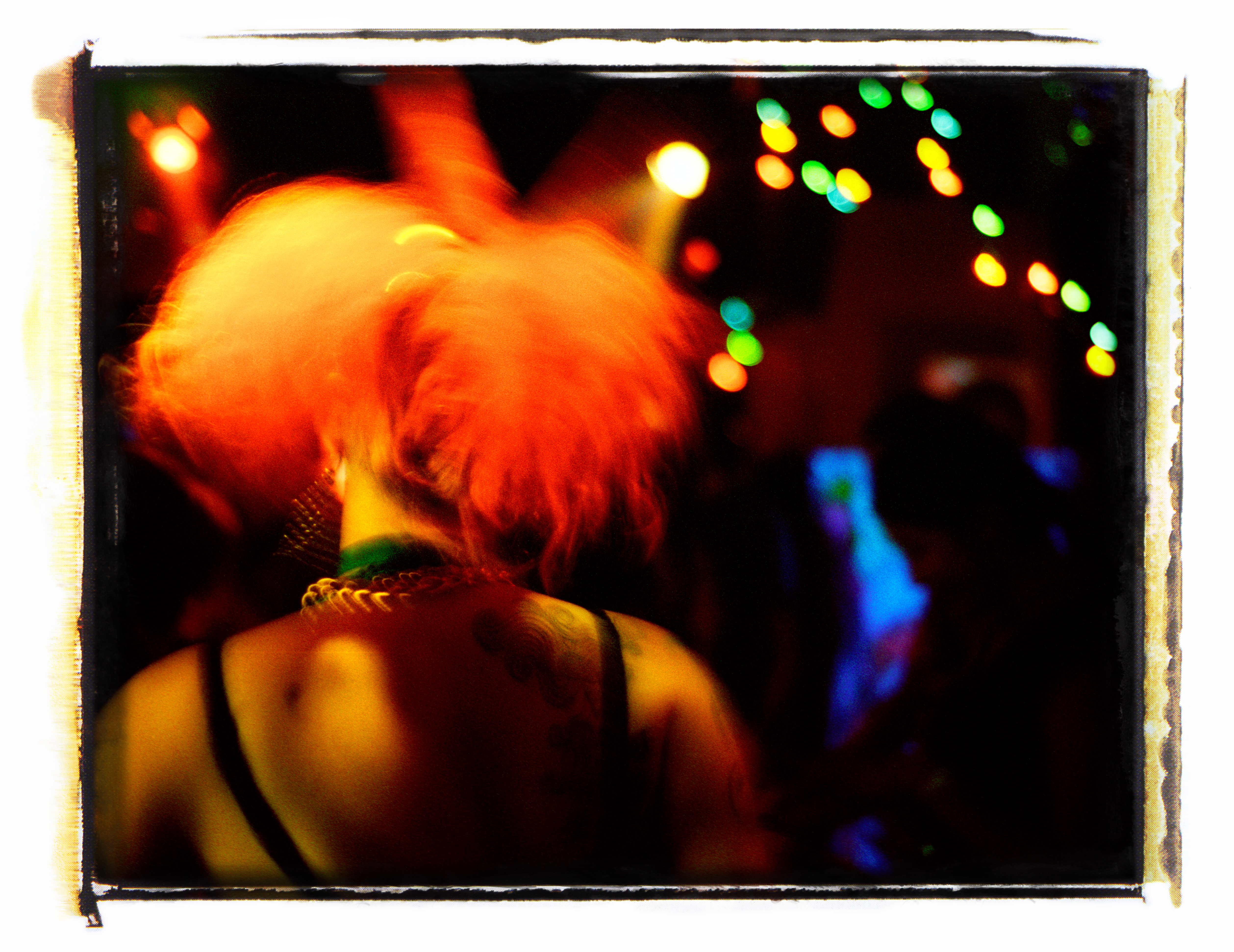 The images for Strobe were hand-held and shot with a Nikon SLR on cross-processed slide film with no flash, utilising the strobe lighting as the main light source to capture the colour and movement.