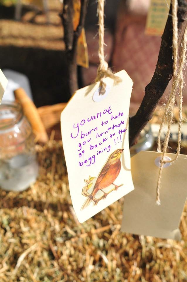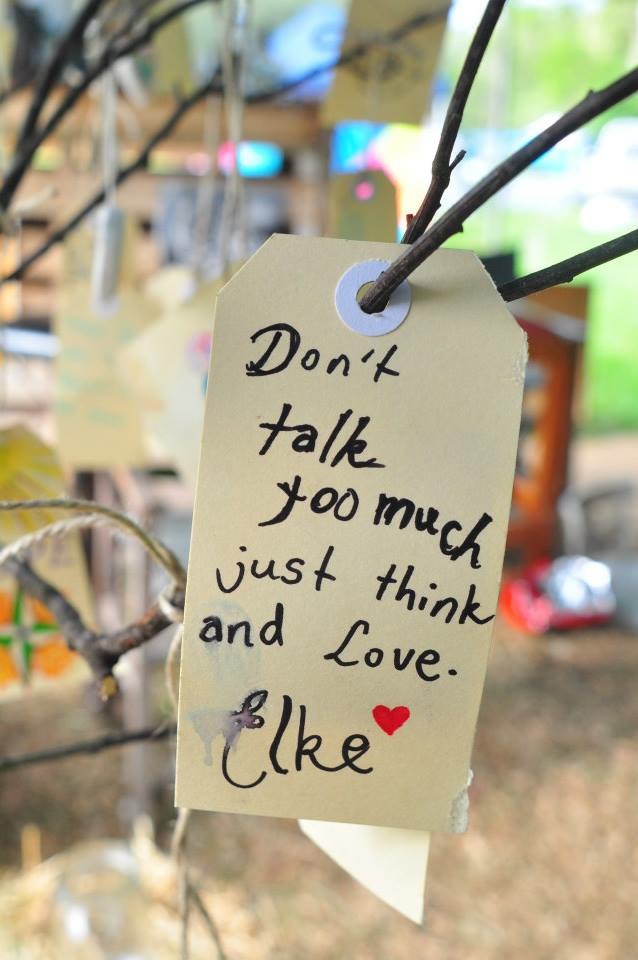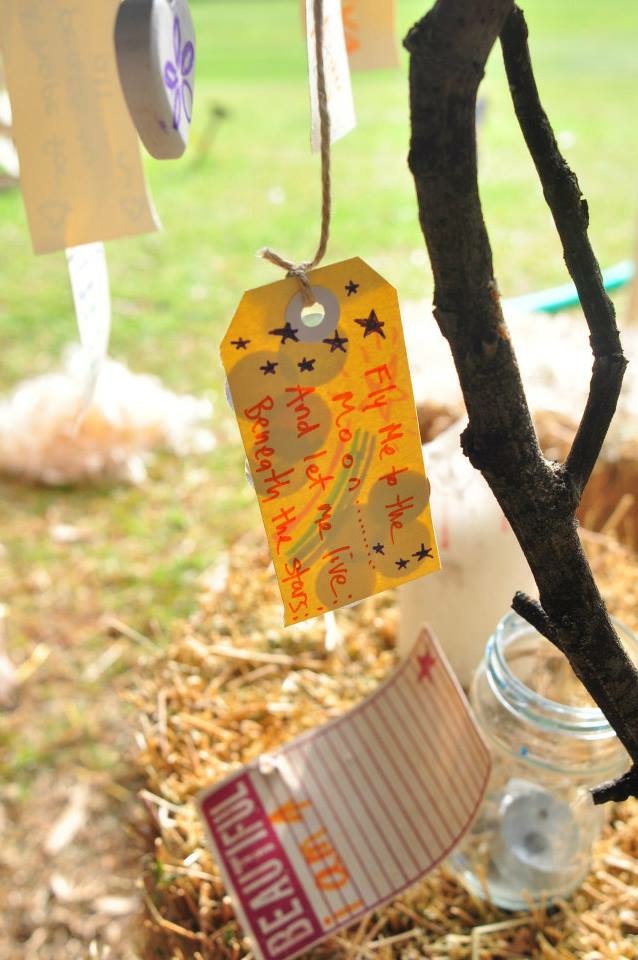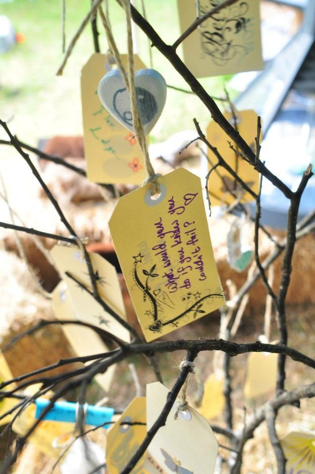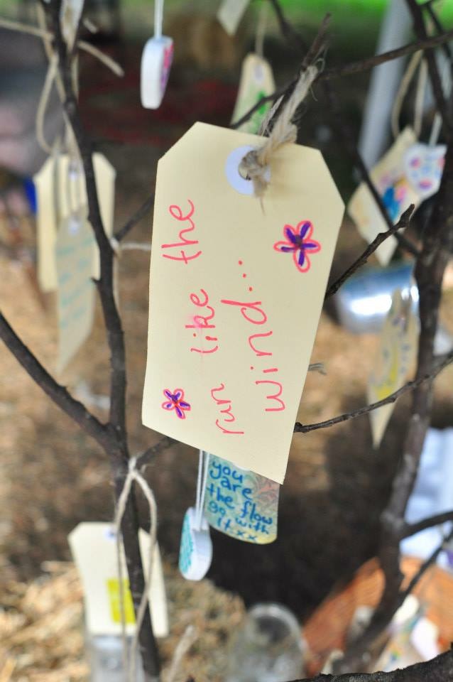 A simple participatory project which invited kids and adults to create a wish for peace or a message of goodwill and happiness. Each wish was hung on a small tree to create a tree of life giving thoughts.