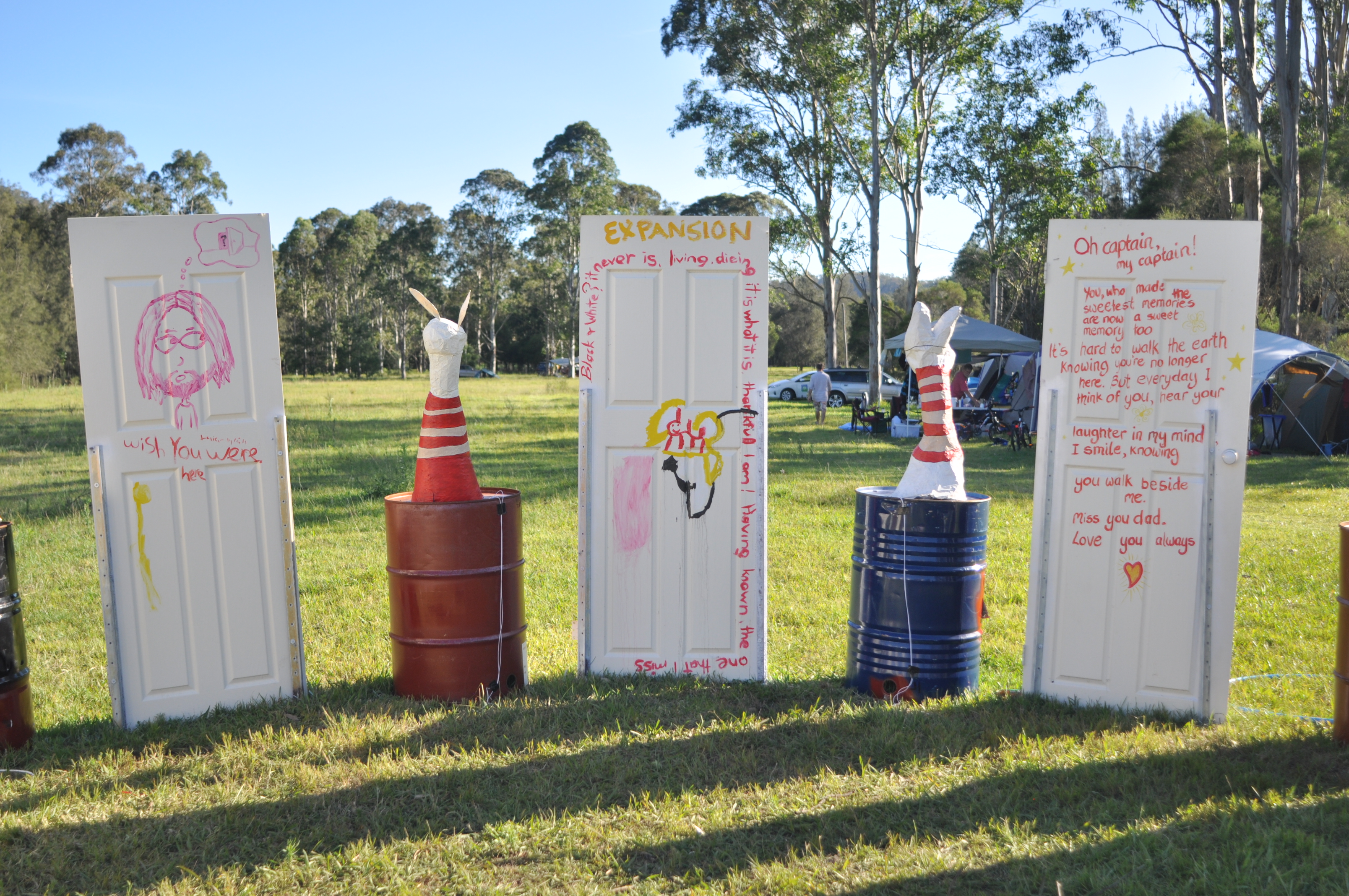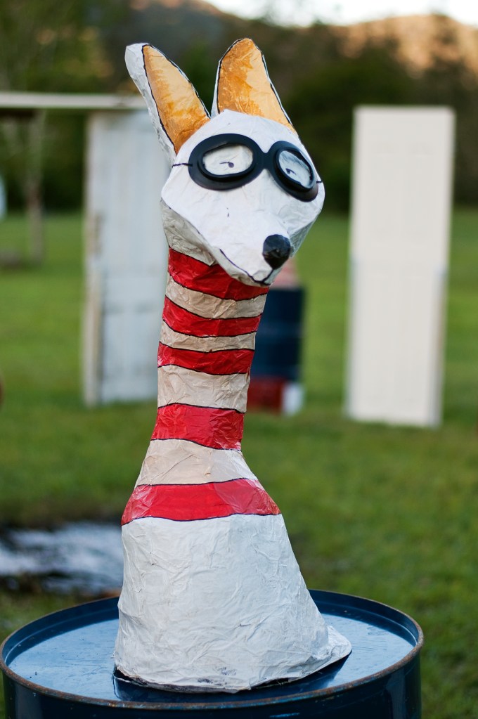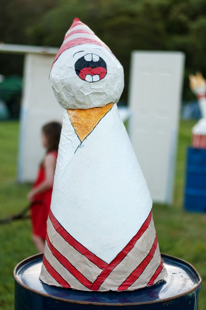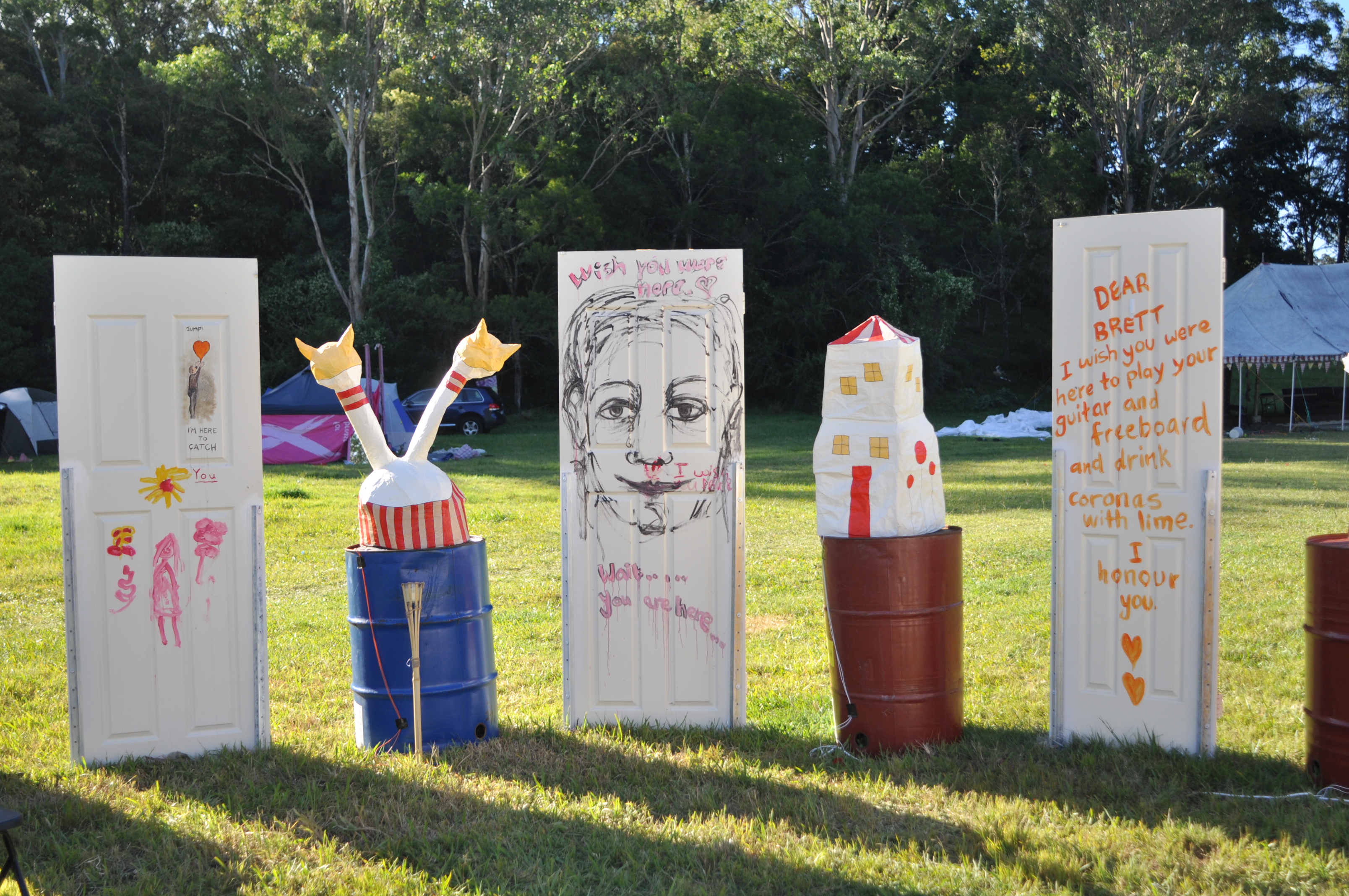 Circus prop characters were the first set of guardians created for the Wild Temple of Yam in response to the theme of Cirque du Yam. This set of 12 character sculptures took about 9 months to complete and embody representations of the different human archetypes that make up social structures and form community. They average 1m in height and are made from chicken wire and papier-mâché, painted to look like aging circus props.