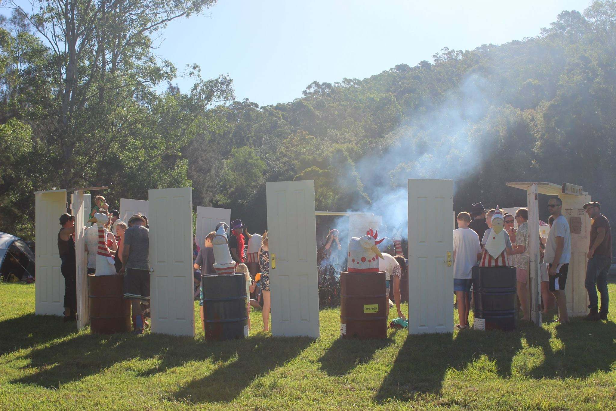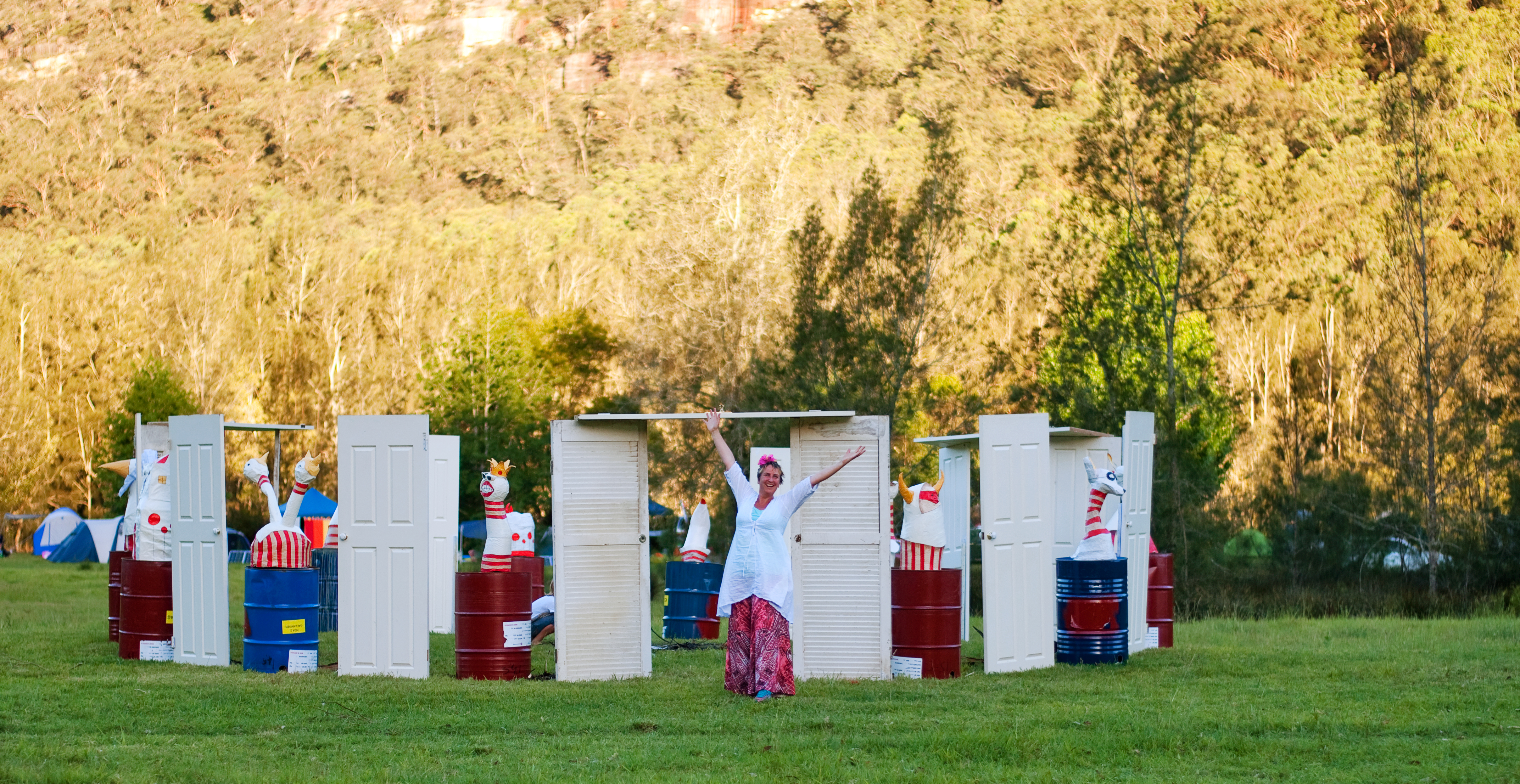 The concept was to recreate the original temple, Stonehenge, in a quirky form as Doorhenge. Between each door was a template guardian. Each year, the configuration was slightly different, and the symbolism of the ‘guardians’ changes. I created different sets of temple guardians in response to the Wild Yam theme: