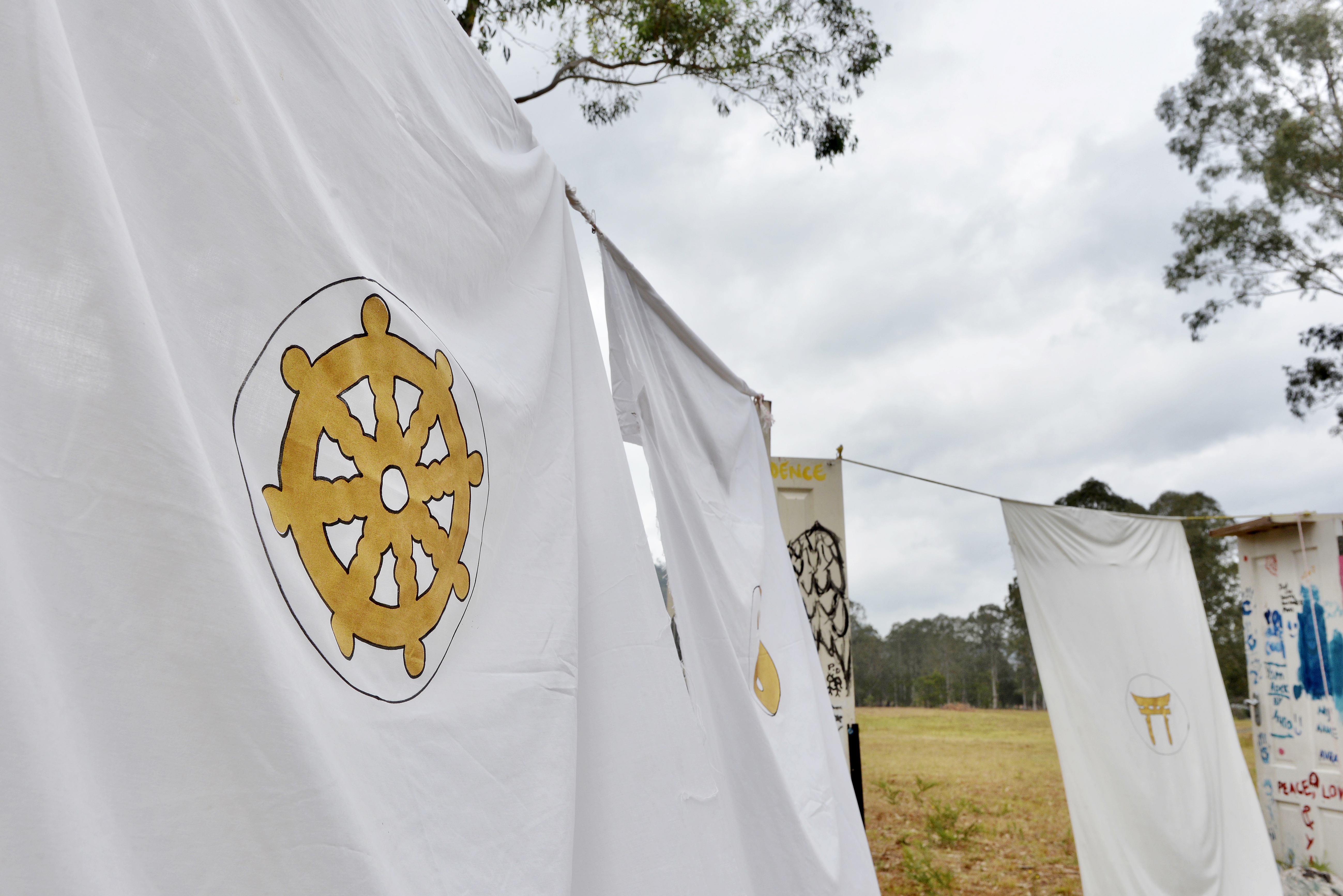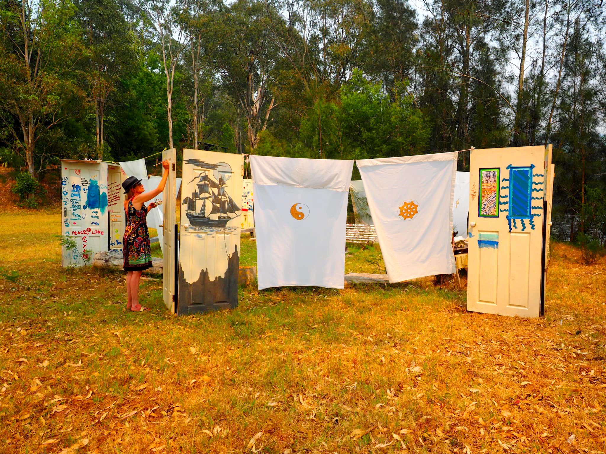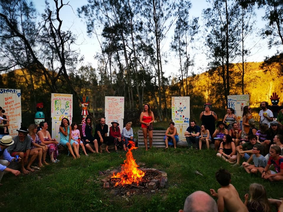 The temple space was designed to be a nondenominational, open and inclusive space for reflection, meditation, remembrance, spirituality and ceremony. It was intended to bring people together and build community by promoting tolerance, diversity, empathy, compassion, connection and belonging. It was a much loved space with a fire in the centre, and was used for a range of activities at Wild Yam, including ceremonies, workshops, a funeral celebration, a wedding, women’s circles, secret men’s business, singing, songwriting and music jams.