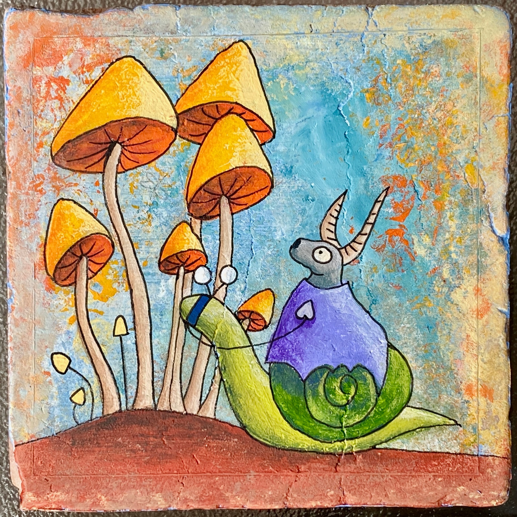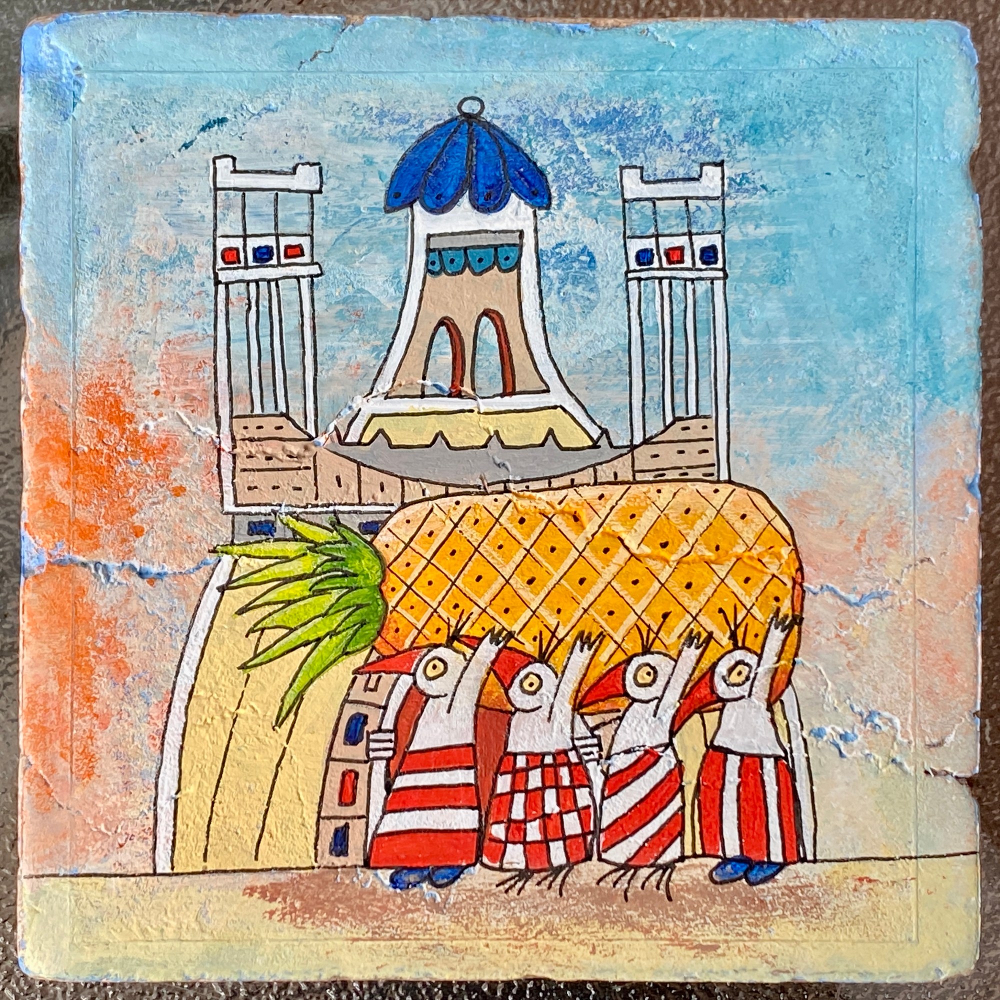 I’ve been experimenting with different formats and options for creating art to sell. My first experiment is a set of 4 hand-painted drink coasters. This is a one-off, original set. Made using leftover bathroom tiles, they are acrylic and ink with a gloss coat sealer.