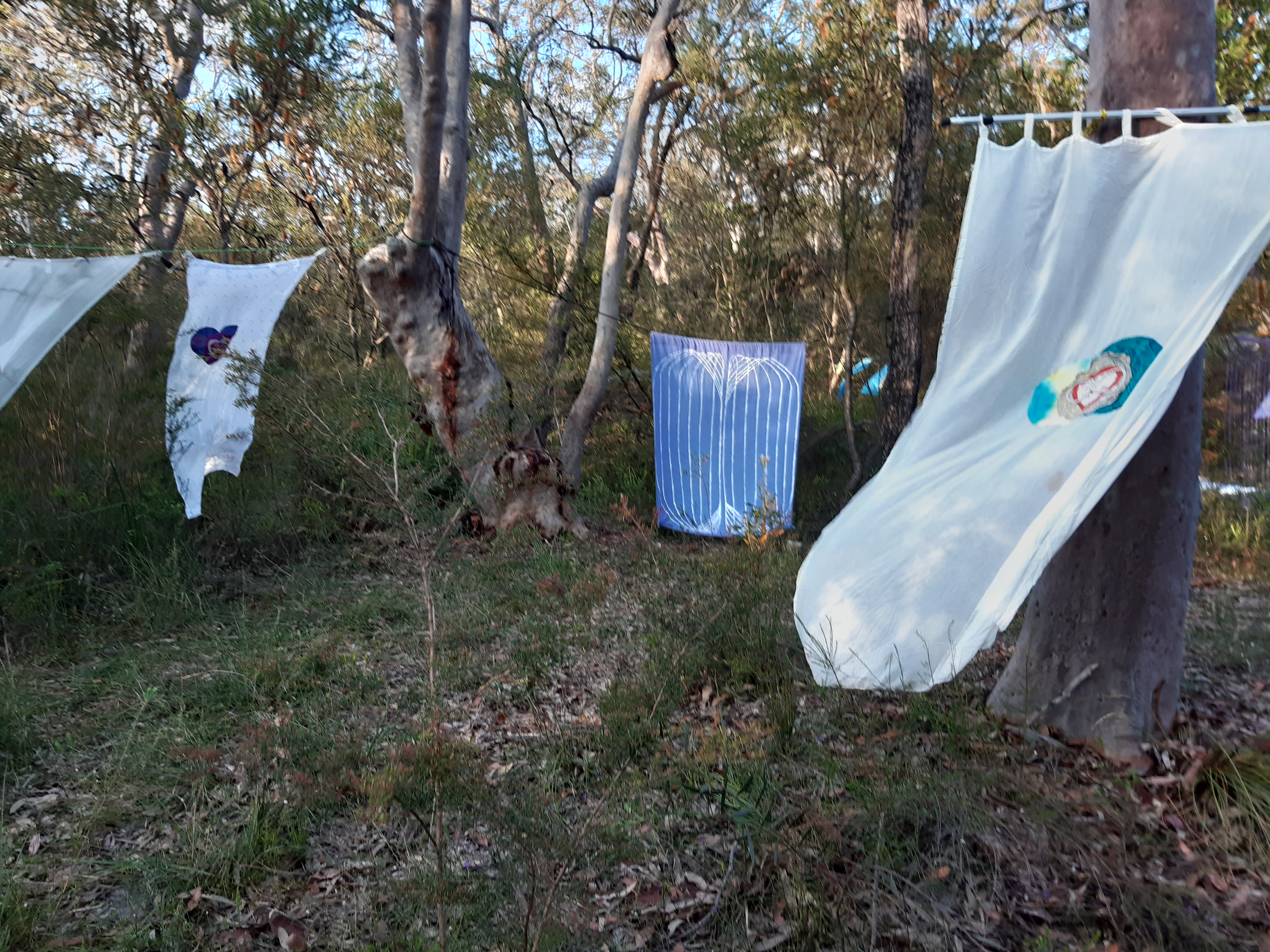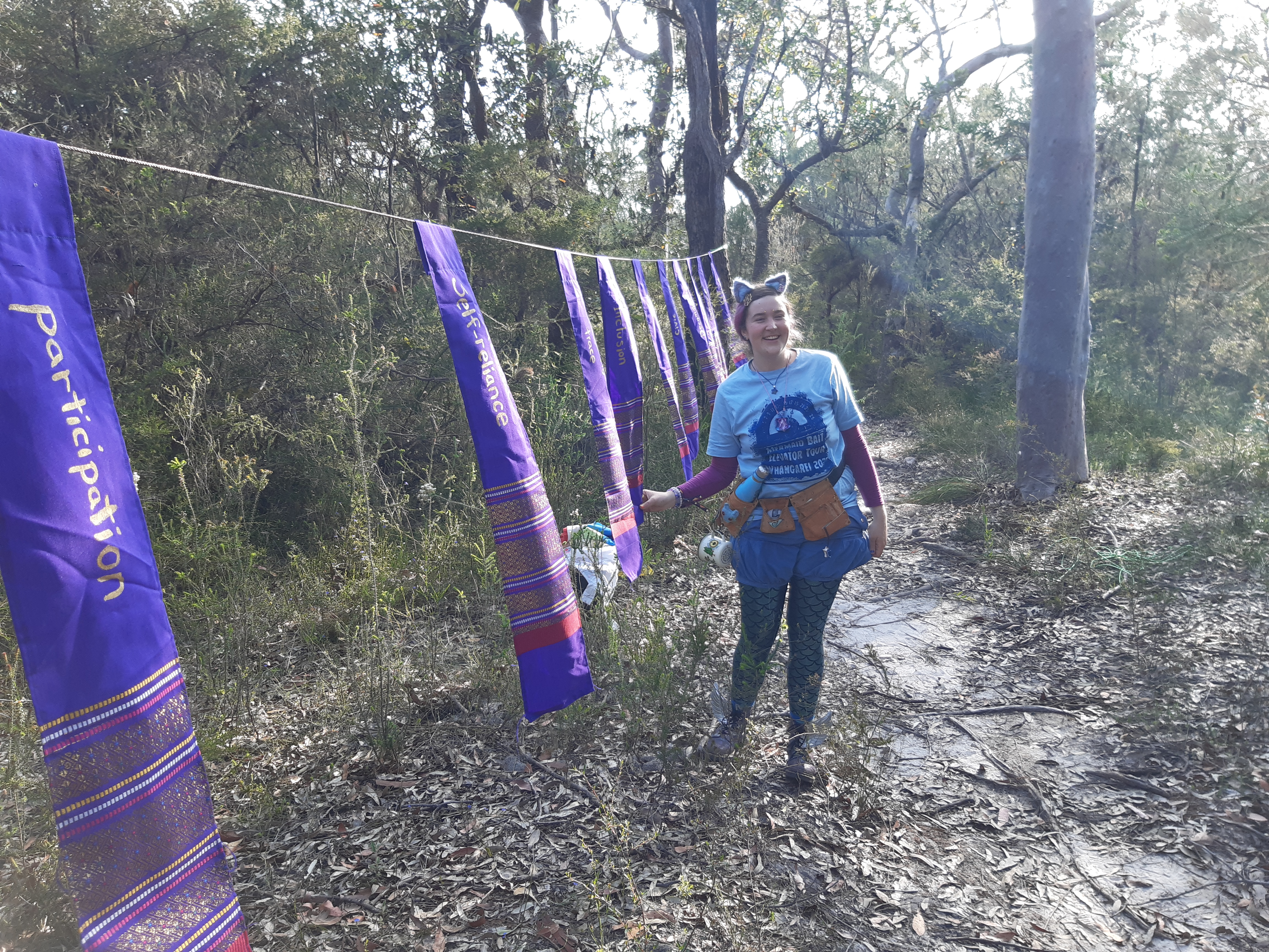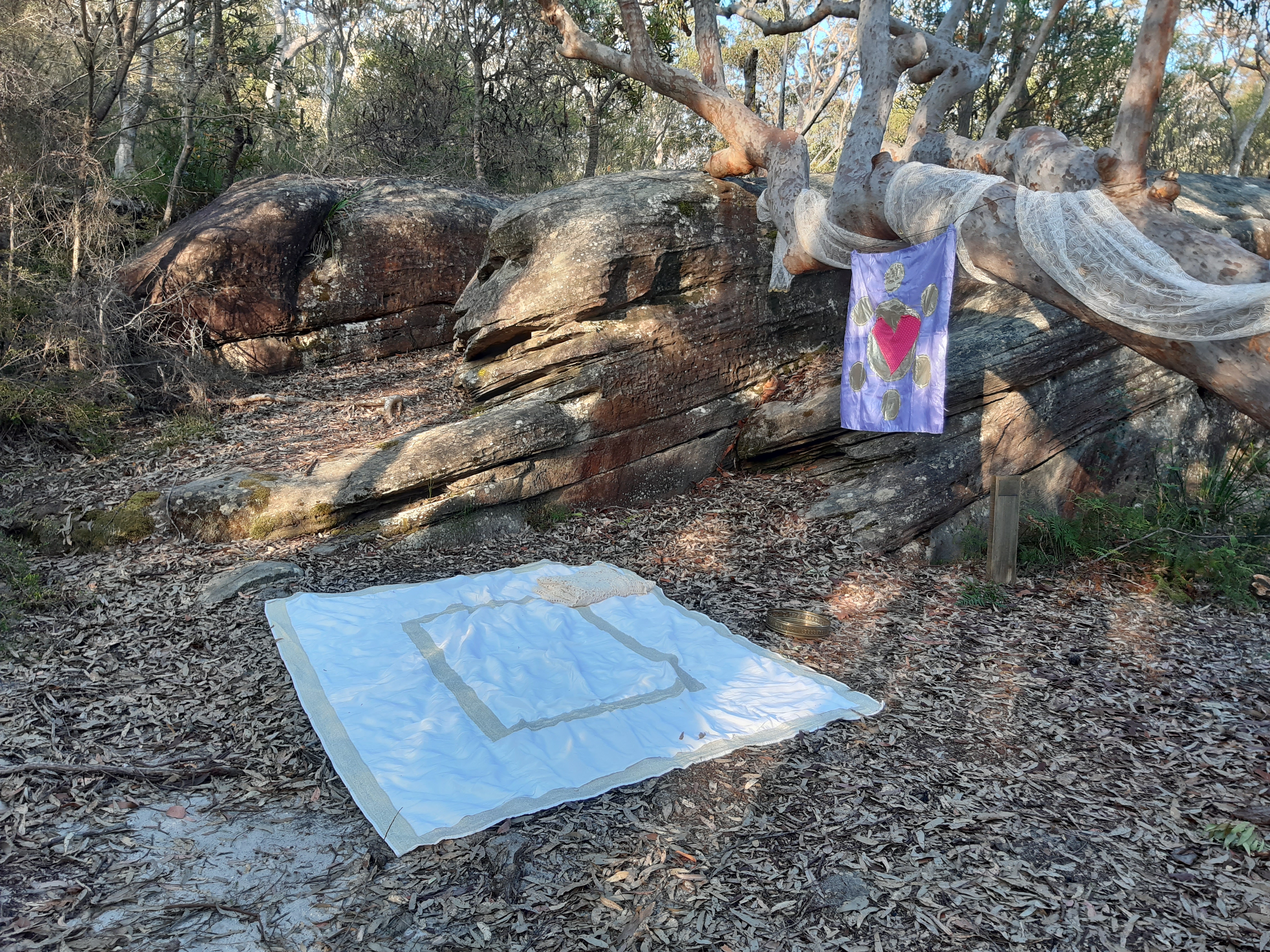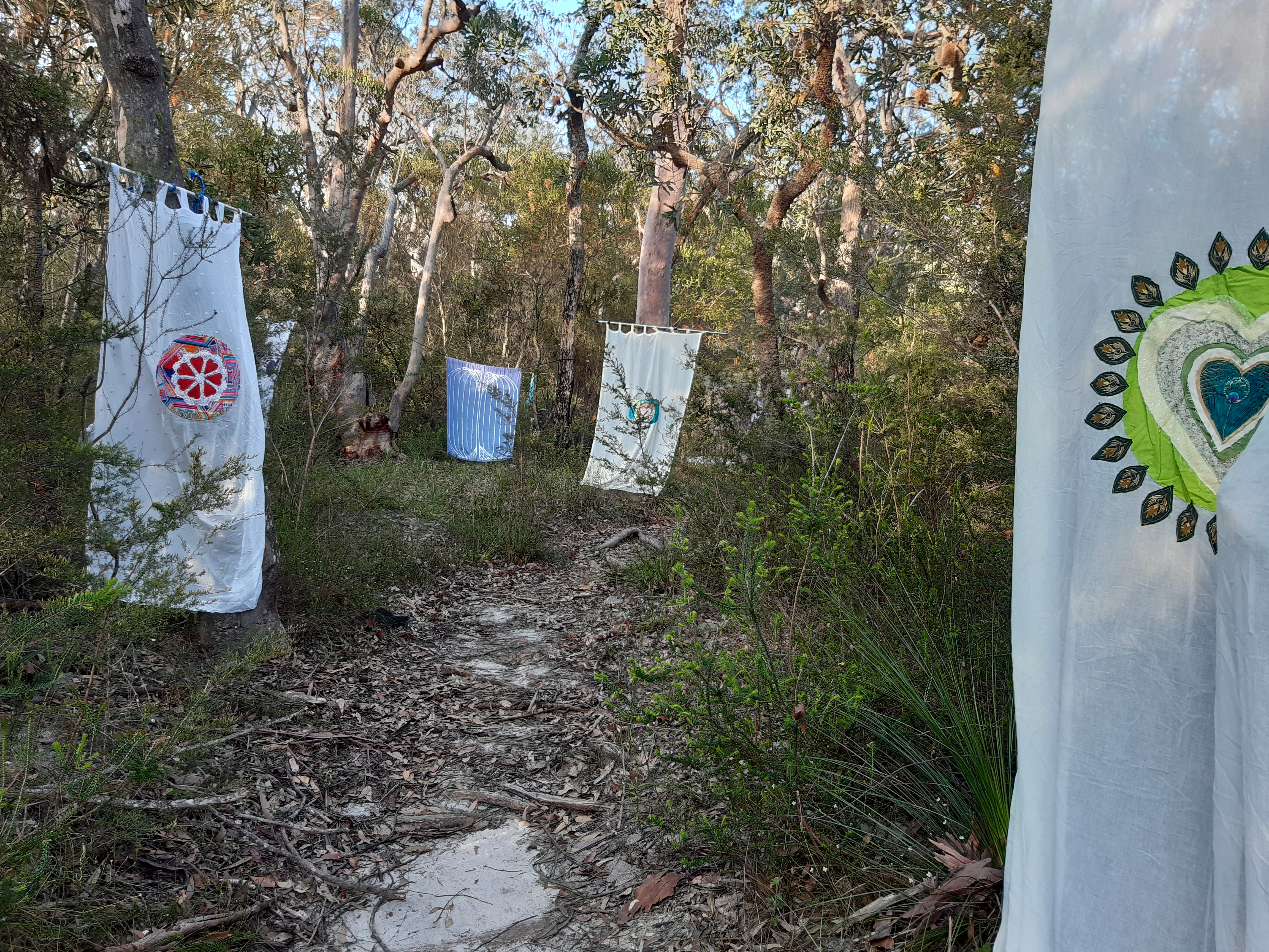 Adam took the love banners I constructed for the Enchanted Forest of Love to a small burn event on the NSW Central Coast called The Third Degree and created a nature temple in collaboration with the Unicorn Orphanage crew!