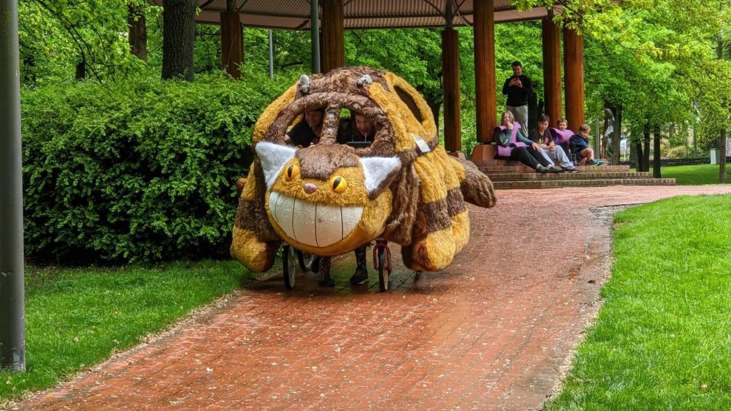 Catbus is a magical Cheshire cat bus who turns up when people are in need and takes them to exactly where they need to go! Catbus now has light up eyes, wheels that drive like a giant shopping trolley and is furnished with a furry bench seat for taking passengers for rides. However, cats are notoriously belligerent and never do what we want them to do; Catbus is an autonomous being with a mind of his own. He loves pats, catnip and naps in the sun, but does NOT like water. Catbus is an autonomous vehicle with a mind of his own.