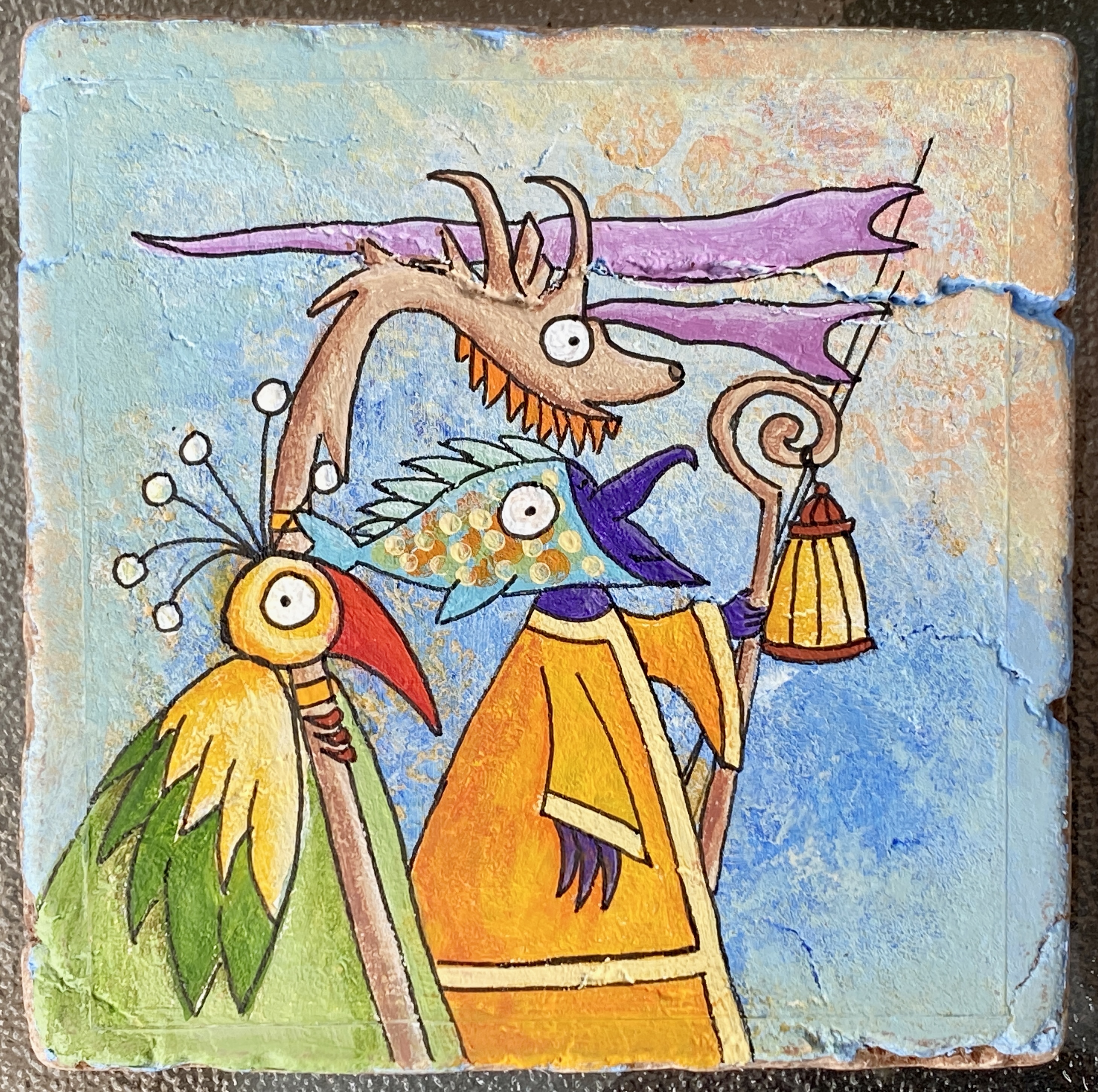 I see strange creatures and faces everywhere – in rocks, tree bark, fossils, walls, fence palings and even in floor tiles. For the last 10 years, I have been turning them into illustrations and writing stories about them. During this time, I have developed a substantial library, with more than 100 whimsical creatures.