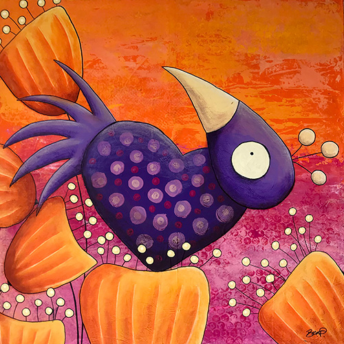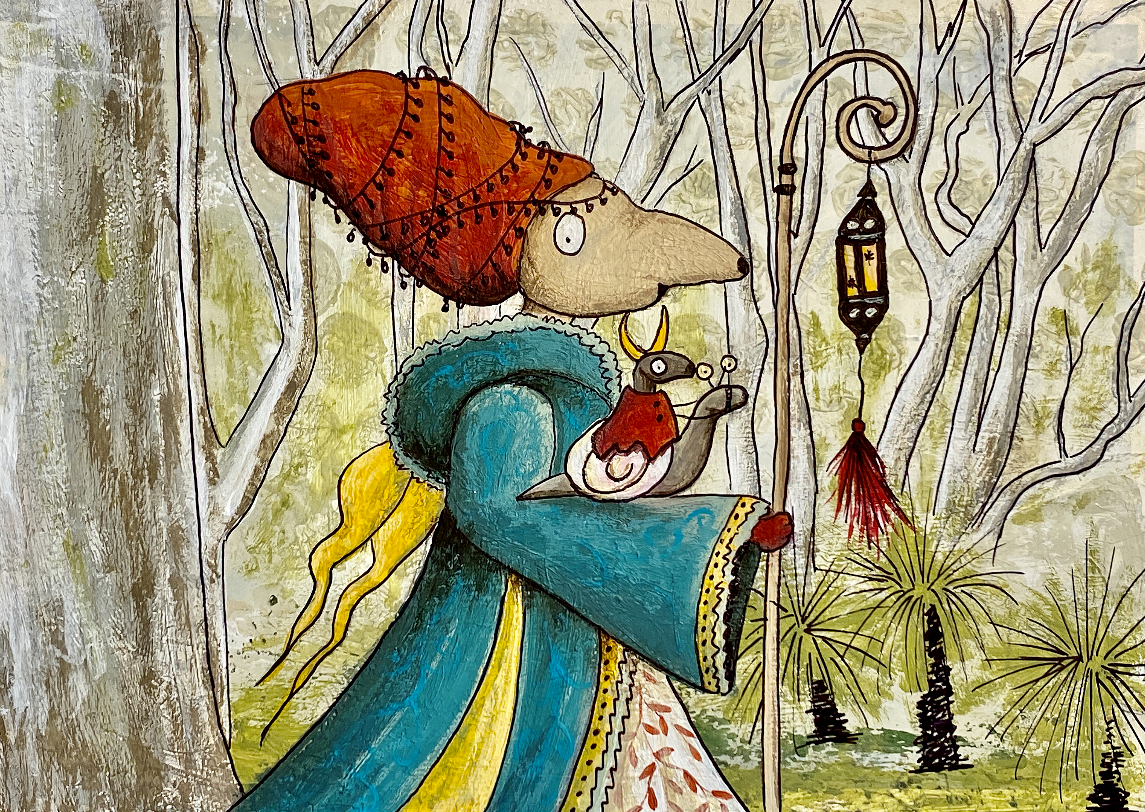 Usually these illustrations are very small and painted onto recycled business cards. Each art card is hand-painted and built up in layers. They are often finished off with little pieces of wisdom. I’ve been fascinated with words and a word collector since I was a child and these wisdoms come from many sources. Some are borrowed from quotations, song lyrics or my favourite authors and artists, others are created by me.