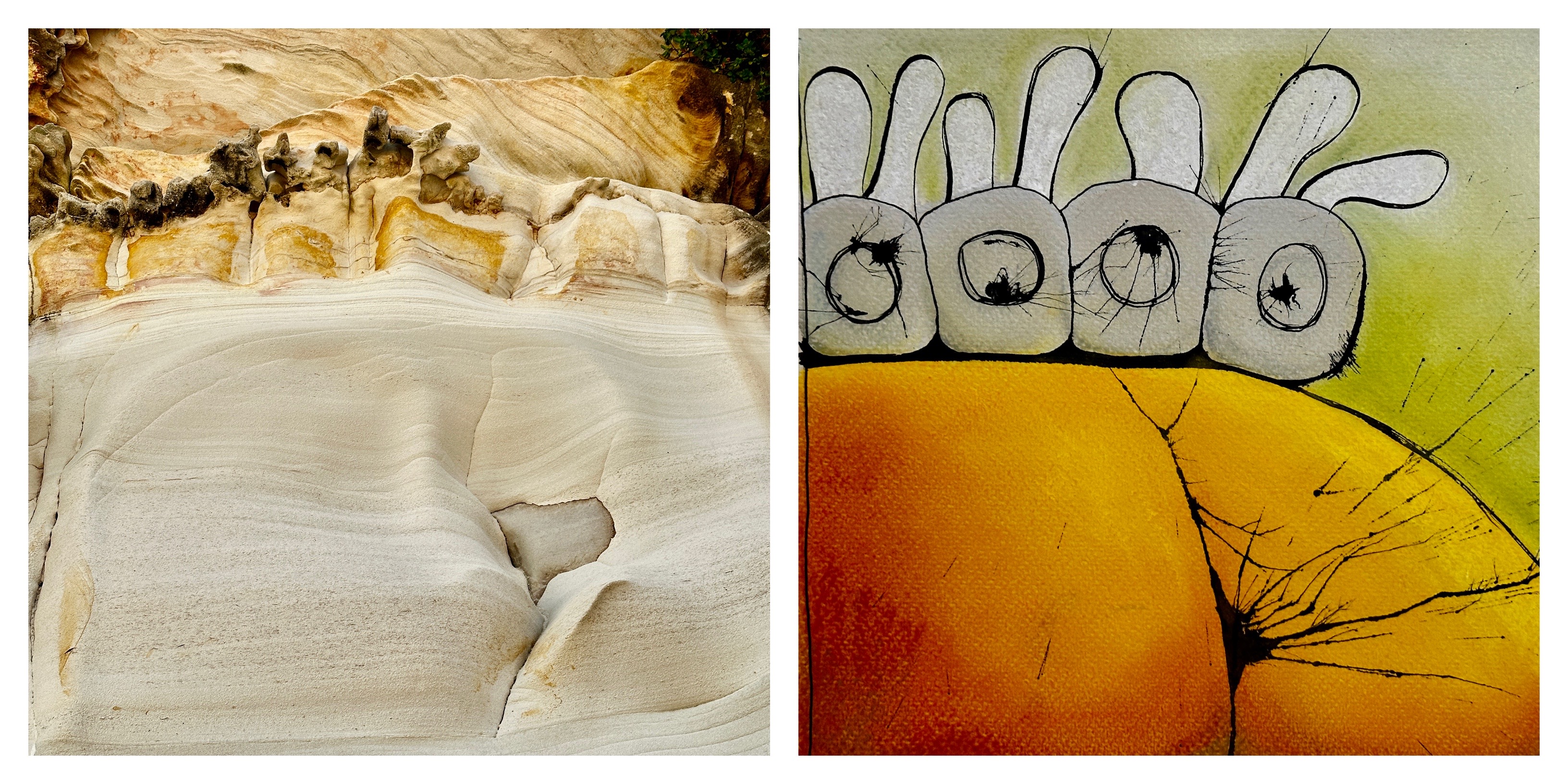 My landscape abstracts evolve from the unnoticed textures of the earth. Each piece begins with a photograph of ground, rocks, sand, or other natural surfaces—fragments of landscape often walked over without a second glance. Inspired by time spent walking on the beach or in the bush, swimming in the sea and sitting beneath waterfalls, this work is a balm against internal chaos.