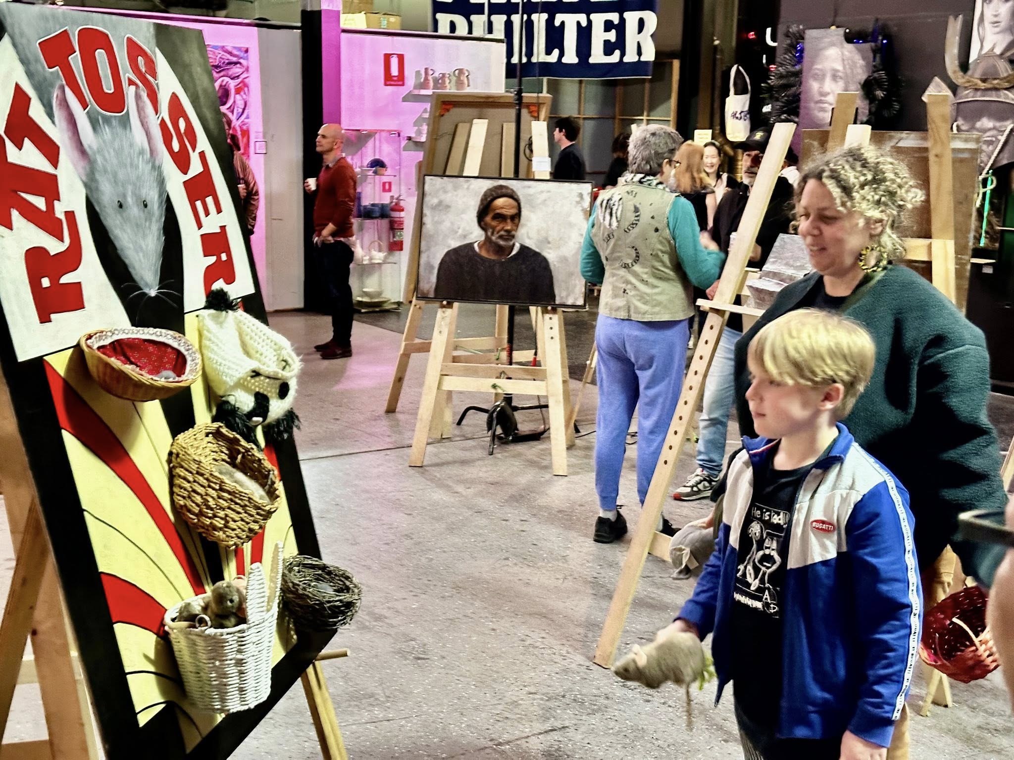 Such a fun night last night at Soundworks Arts Hub Arts Party! Thanks to all who came along and supported us artists. I sold 4 of my small originals and a bunch of merch, so I’m a very happy camper. Congratulations Amos Stark – I’m glad the works have found a good and appreciative home.