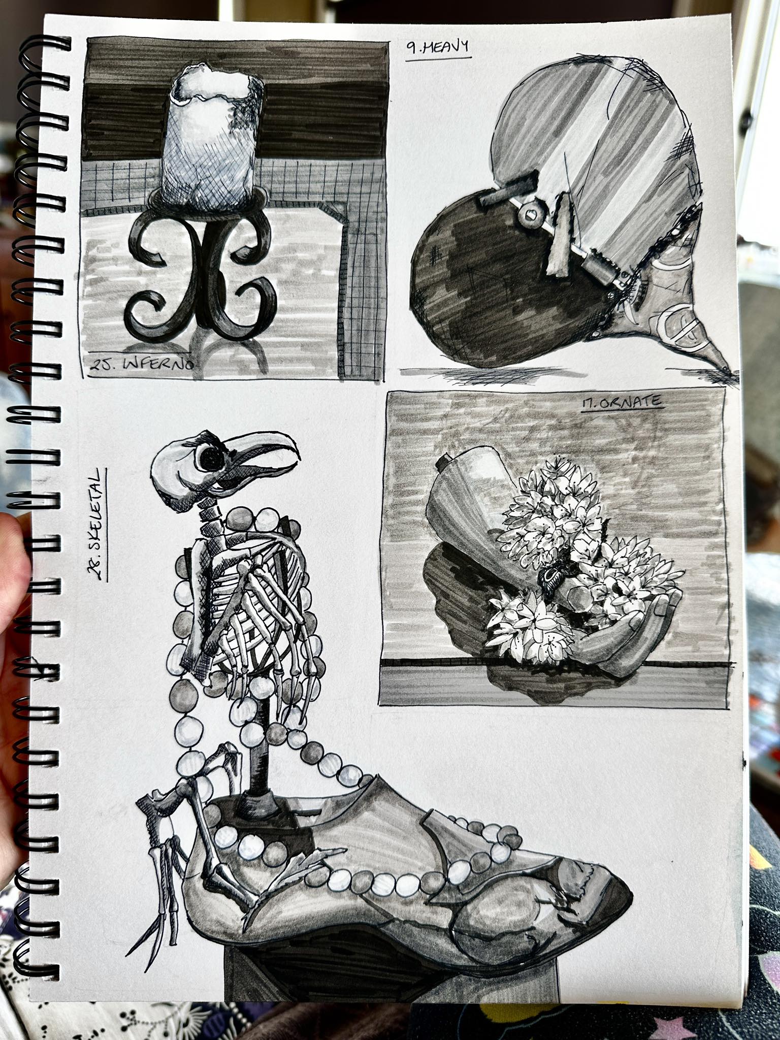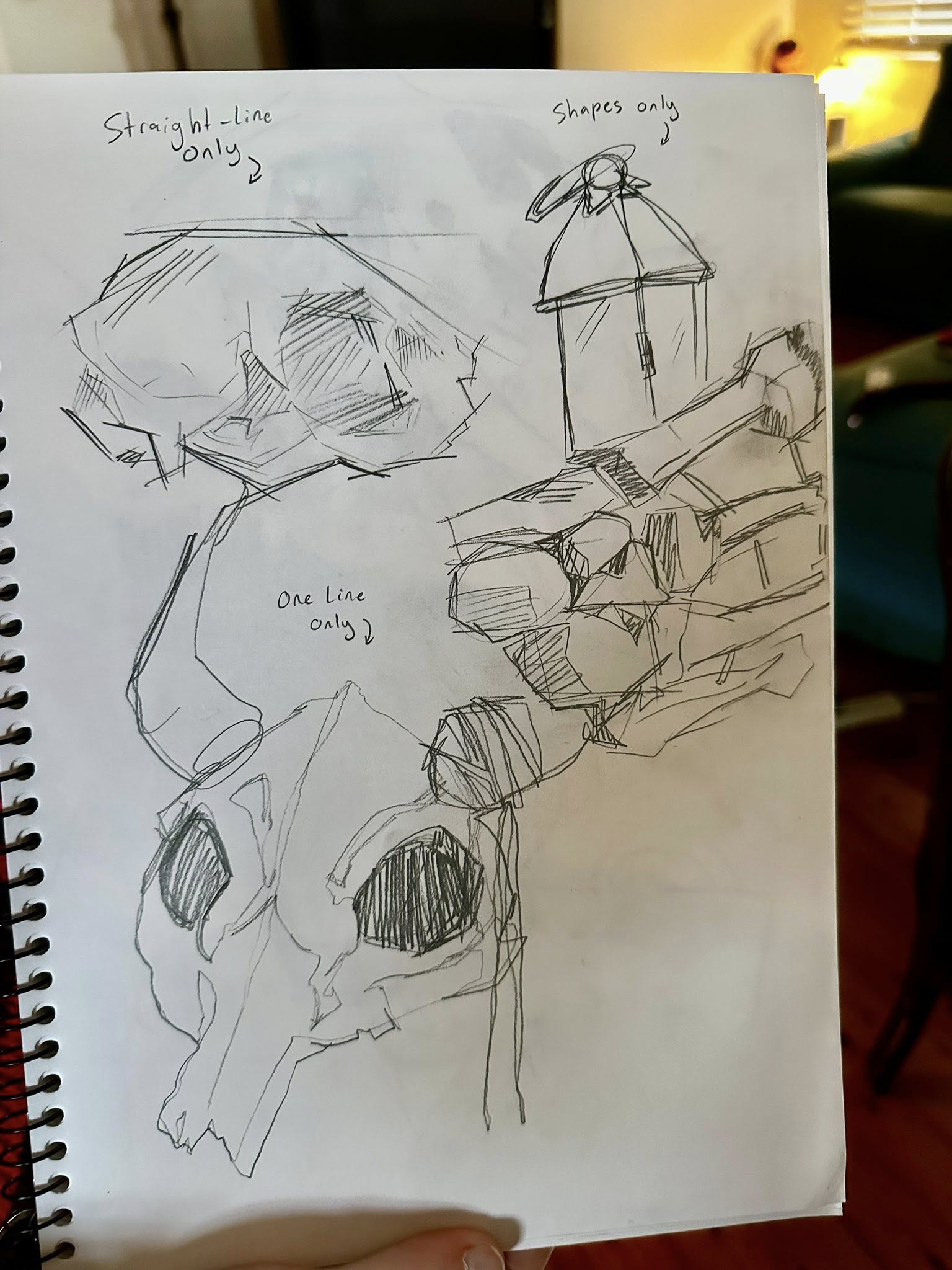And finally we brought it all together and practiced our new skills with a sketch of an object / skull.